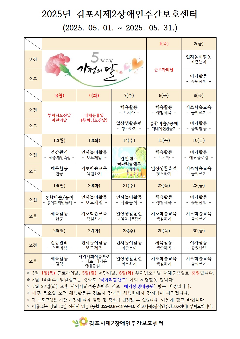 팩스 : 031-983-0421 / 이메일 : gimpo2nd@naver.com후원계좌 : 농협 355-0087-3898-13 (김포시제2장애인주간보호센터)